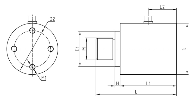 型號 | 量程(kN) | 量程(t) | D | D1 | D2 | M | L | L1 | L2 | H | M1 |